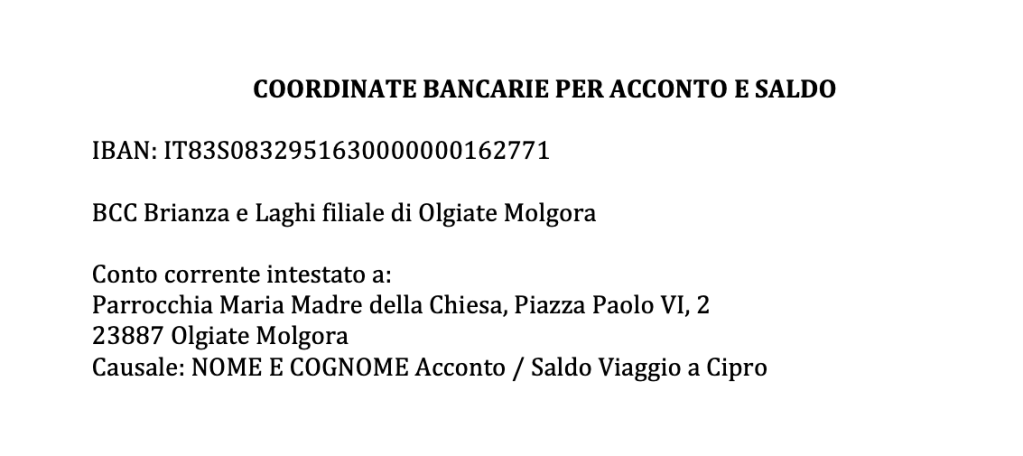 Pellegrinaggio a Cipro 2026 CIPRO OTTOBRE 2 – NUOVO VOLO – per i Sigg.ri partecipantiDownload SCHEDA ISCRIZIONE-VIAGGI DI GRUPP O-carta identità e passaportoDownload